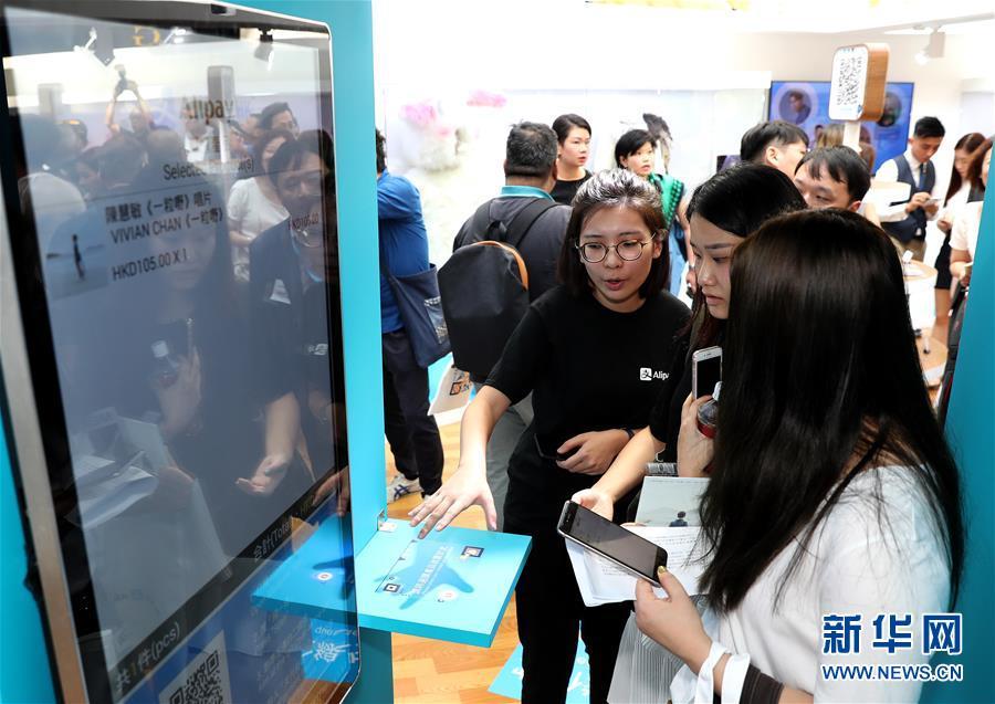 9月5日,工作人員在無人零售商店演示付款結賬方法。當日,香港首家AlipayHK(支付寶香港版)無人零售商店在九龍區(qū)奧海城開業(yè)。商店占地約370平方米,售賣多款時尚精品、服飾等,還引入一臺智能機械臂,為顧客現(xiàn)場沖調香濃咖啡。新華社記者李鋼攝