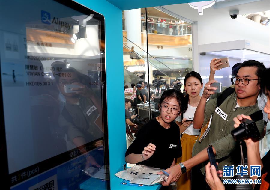 9月5日,媒體記者在無人零售商店體驗付款環(huán)節(jié)。當日,香港首家AlipayHK(支付寶香港版)無人零售商店在九龍區(qū)奧海城開業(yè)。商店占地約370平方米,售賣多款時尚精品、服飾等,還引入一臺智能機械臂,為顧客現(xiàn)場沖調香濃咖啡。新華社記者李鋼攝