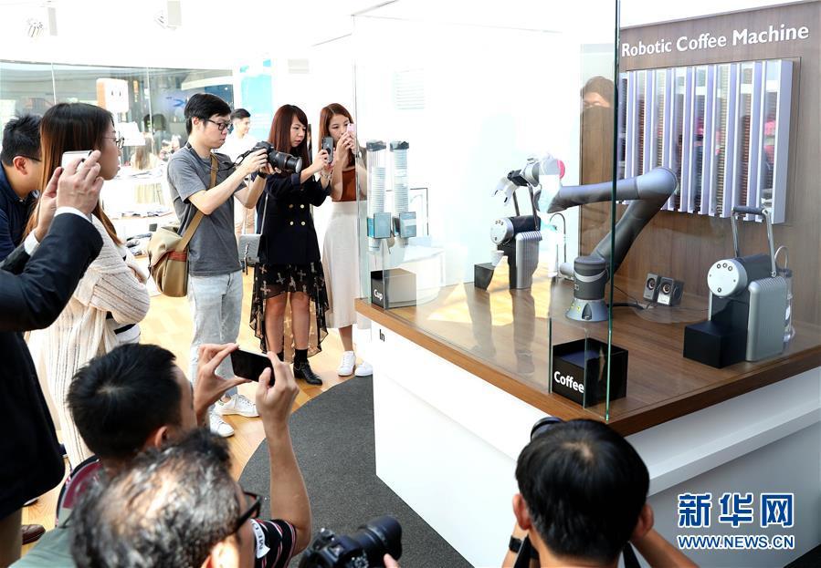 9月5日,無人零售商店內的機器人在做咖啡。當日,香港首家AlipayHK(支付寶香港版)無人零售商店在九龍區(qū)奧海城開業(yè)。商店占地約370平方米,售賣多款時尚精品、服飾等,還引入一臺智能機械臂,為顧客現(xiàn)場沖調香濃咖啡。新華社記者李鋼攝