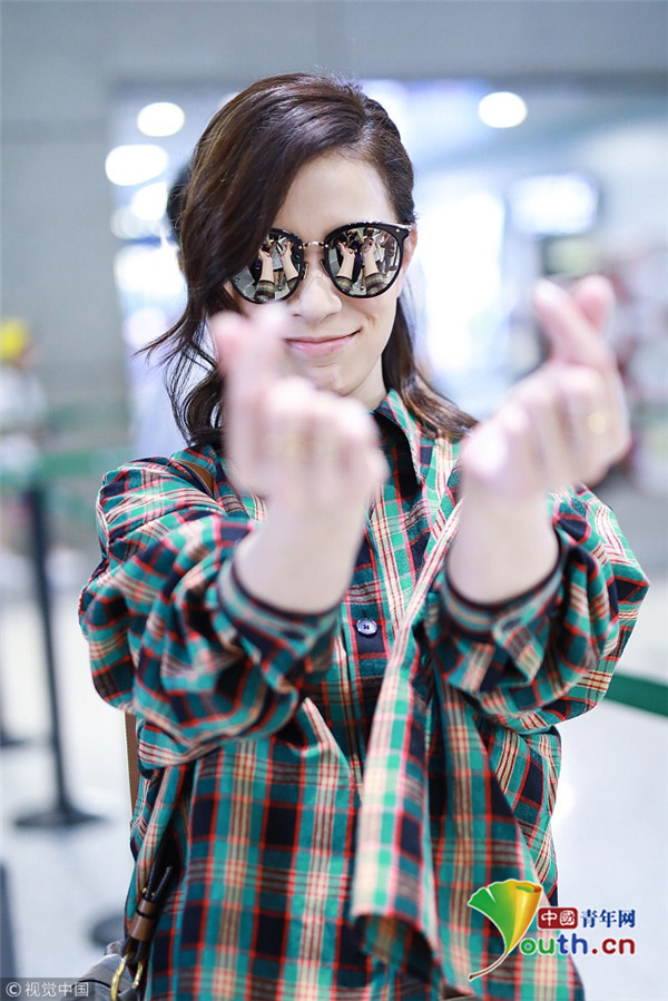 2018年9月9日,“嫻妃”佘詩曼從上海機(jī)場飛往北京機(jī)場,她擺“剪刀腿”大方任拍,身穿格紋襯搭配衫燈籠褲,時(shí)髦青春衣品超贊!