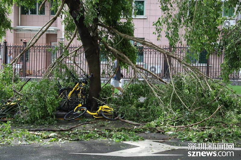 在蓮花北村靠近北環(huán)中學的小路,記者注意到拉起警戒線,有多株樹木經(jīng)不住大風考驗,已投降就地倒下。