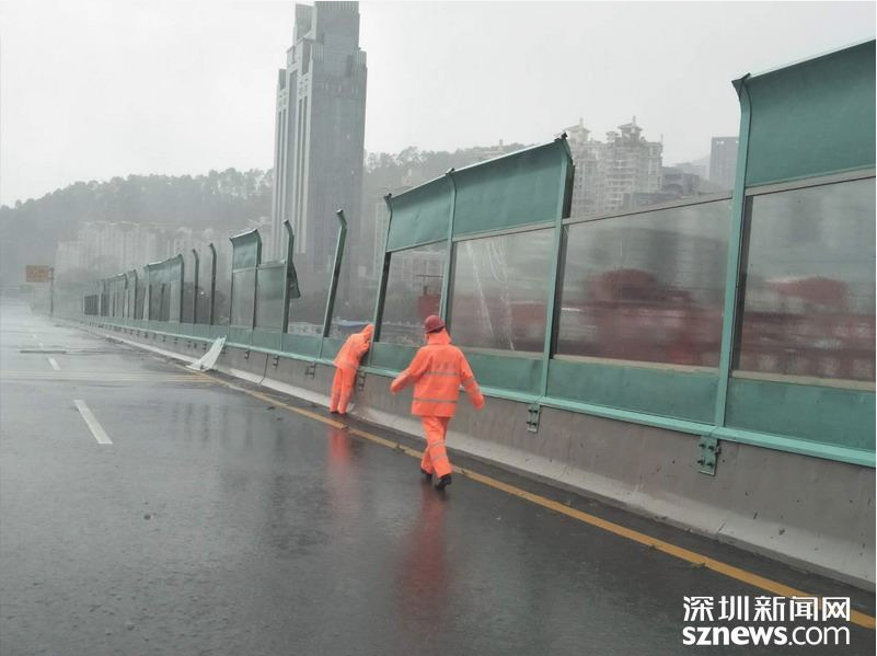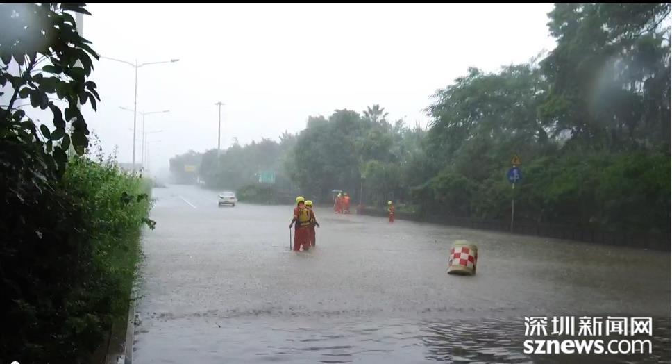 福田區(qū)位于北環(huán)皇崗立交,深圳市水務(wù)集團福田分公司梅林所防洪排澇人員,趁風(fēng)勢雨小,打開雨水箅子排積水。