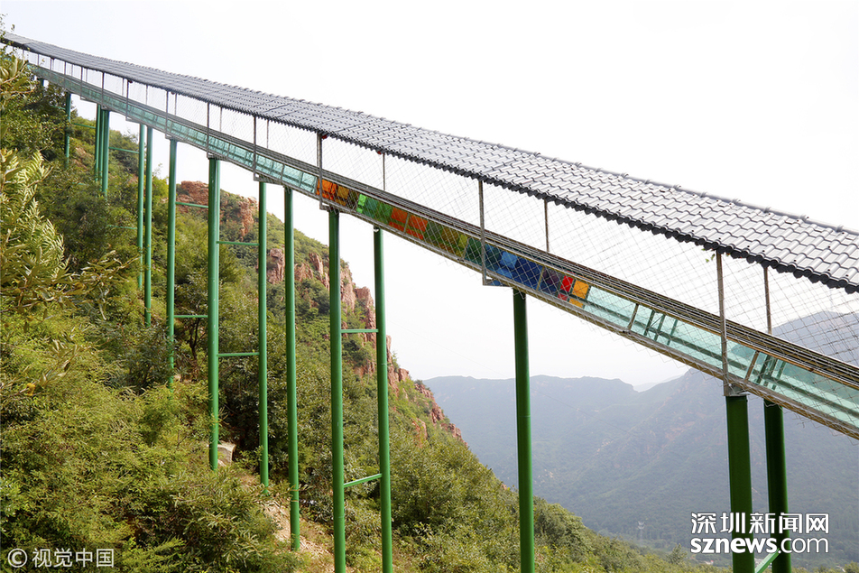 2018年8月11日,鄭州,雙排高空玻璃滑道亮相伏羲山三泉湖景區(qū),整條滑道從高空俯視,呈龍形蜷曲姿態(tài)俯臥于玫瑰嶺下。