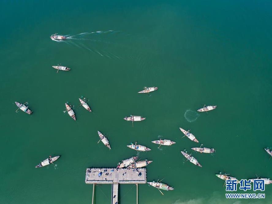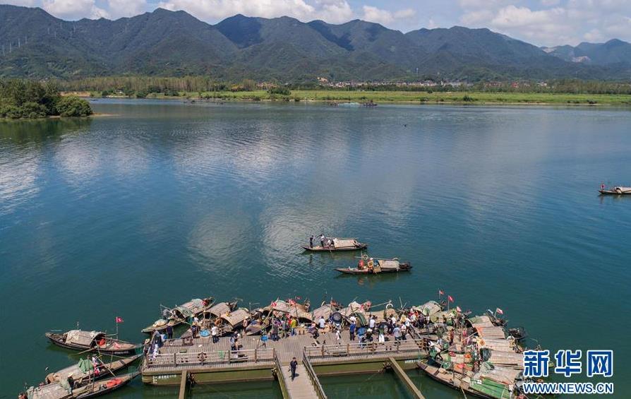 9月18日,漁民們乘坐漁船在富春江里捕撈江鮮(無人機(jī)拍攝)。 當(dāng)日,浙江省杭州市富陽區(qū)場口鎮(zhèn)東梓關(guān)村開啟“江鮮大會”,數(shù)十艘小漁船一起駛向富春江江面,拉開了秋分節(jié)氣前捕撈江鮮的序幕。 東梓關(guān)村有著1000多年歷史,水陸交通方便,自古就是富春江南岸重要的商貿(mào)集散地,素有富春江“東流第一關(guān)”之稱。隨著近年來美麗鄉(xiāng)村建設(shè)的推進(jìn),東梓關(guān)村著力打造白墻黛瓦的江南民居,同時依托富春江豐富的江鮮魚類資源,在秋季舉辦特色“江鮮大會”,通過舉辦江鮮捕撈體驗(yàn)、江鮮第一鍋開鍋、百鮮宴、鄉(xiāng)村小型音樂會、農(nóng)家菜大賽等活動,吸引各地游客前來感受富春江漁民豐收的喜悅和江南千年古村的獨(dú)特魅力,推動鄉(xiāng)村特色旅游發(fā)展。 新華社記者徐昱攝
