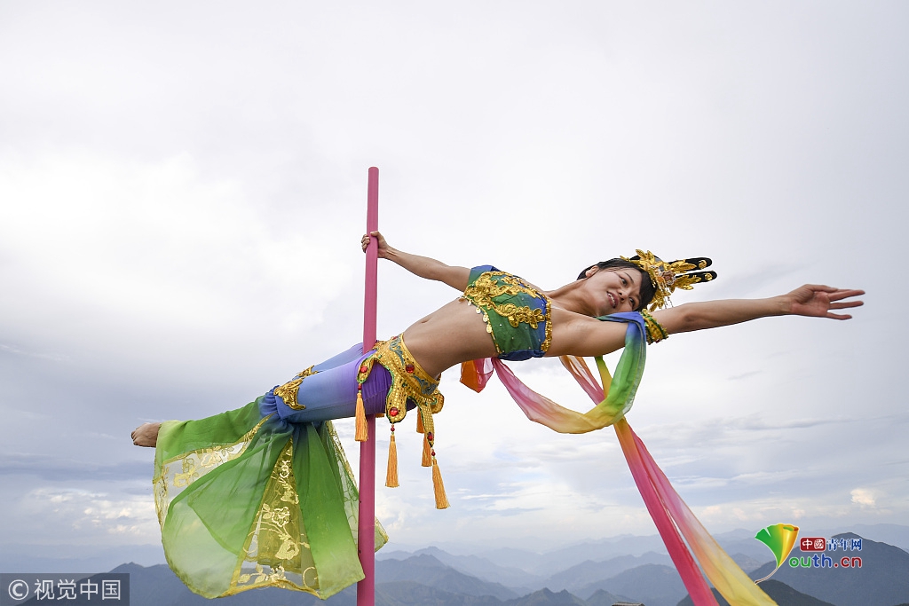 2018年9月20日,中秋節(jié)前夕,位于長三角第一高峰海拔1929米的浙江龍泉山頂,一場柔美的鋼管舞表演吸引了眾人圍觀。