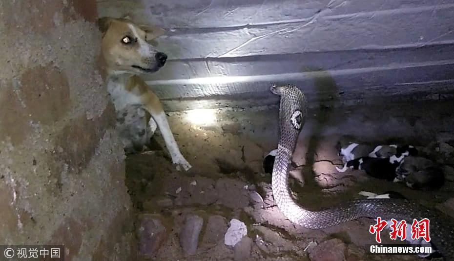 9月20日訊(具體拍攝時(shí)間不詳),印度奧里薩邦,一只寵物狗勇敢地挽救了新生幼犬的生命,它擊退了一條可怕的眼鏡蛇。面對(duì)一條巨大的斑點(diǎn)眼鏡蛇——世界上最毒的蛇之一——這位新媽媽勇敢保護(hù)僅出生兩天的幼崽。但不幸的是,盡管狗狗盡了最大的努力,蛇還是在救援人員救出幼犬之前仍殺死了4只小狗。圖片來源:視覺中國(guó)