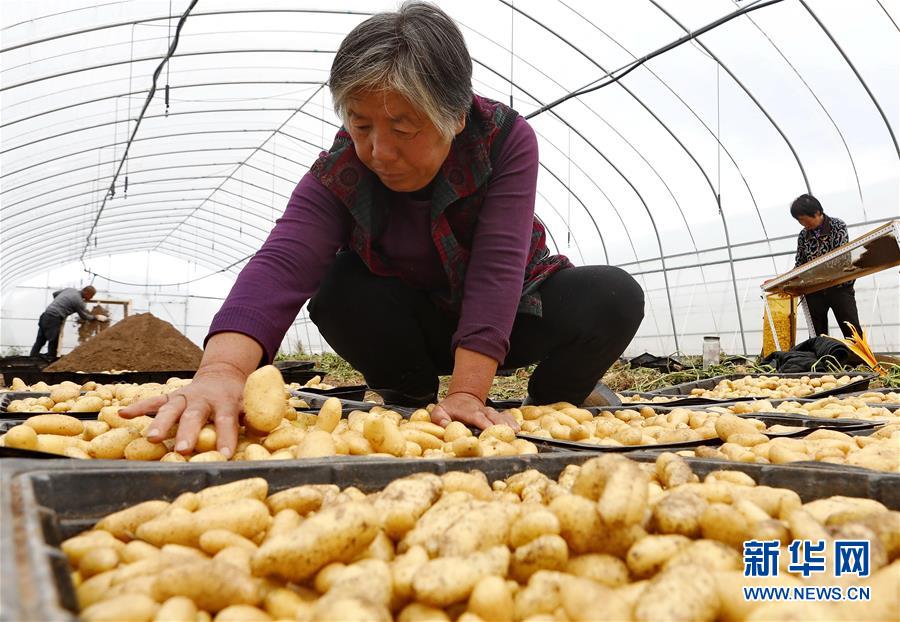 9月23日,張北縣小二臺(tái)鎮(zhèn)一家馬鈴薯育種中心的工人在大棚內(nèi)整理剛收獲的脫毒微型薯。 近年來(lái),地處壩上地區(qū)的河北省張北縣因地制宜,積極推進(jìn)馬鈴薯產(chǎn)業(yè)化發(fā)展,形成了馬鈴薯繁種育種、商品薯種植、倉(cāng)儲(chǔ)、加工為一體的產(chǎn)業(yè)鏈,帶動(dòng)農(nóng)民增收致富。 新華社記者楊世堯攝