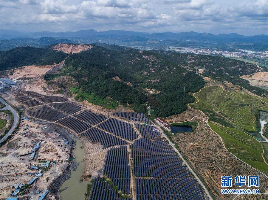 空中俯瞰湖州市埭溪鎮(zhèn)東紅村的光伏發(fā)電站(9月26日無人機拍攝)。新華社記者 徐昱 攝