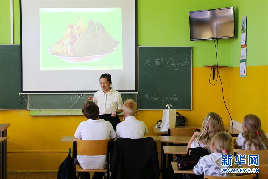 9月25日,在波蘭羅茲第一小學(xué),成都青白江區(qū)外國語小學(xué)老師李艷向波蘭小學(xué)生介紹中國美食。成都青白江區(qū)外國語小學(xué)與波蘭羅茲第一小學(xué)25日在波蘭中部城市羅茲簽署友好學(xué)校合作協(xié)議。這是繼成都與羅茲2015年結(jié)為友城之后,兩座城市人文交流合作的又一新成果。2013年,東起成都青白江、西至羅茲的中歐班列(蓉歐快鐵)開通。5年來,來往兩地的班列不斷增加,有力促進(jìn)了成都與羅茲在經(jīng)貿(mào)、教育、文化等多領(lǐng)域的交流與合作。新華社記者 陳序 攝