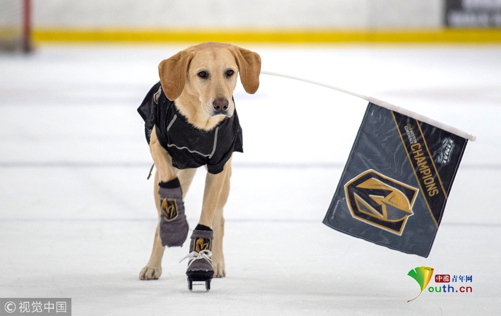 2018年9月26日訊。(具體拍攝時(shí)間不詳)這只可愛(ài)的拉布拉多犬本尼是世界上第一只會(huì)滑冰的狗。