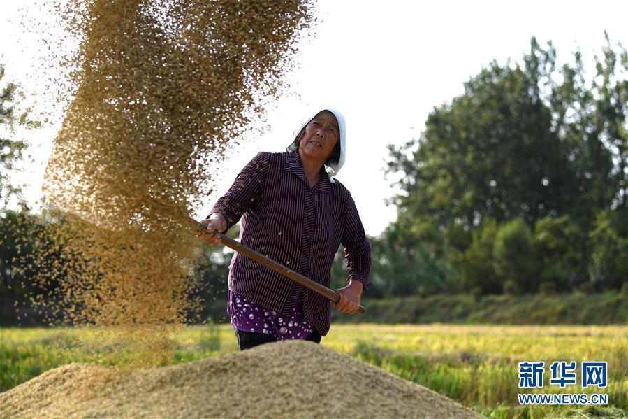 正值秋收時節(jié),安徽省鳳陽縣小崗村水稻陸續(xù)成熟,進(jìn)入收割期。當(dāng)?shù)剞r(nóng)民利用晴好天氣搶收水稻,確保顆粒歸倉。