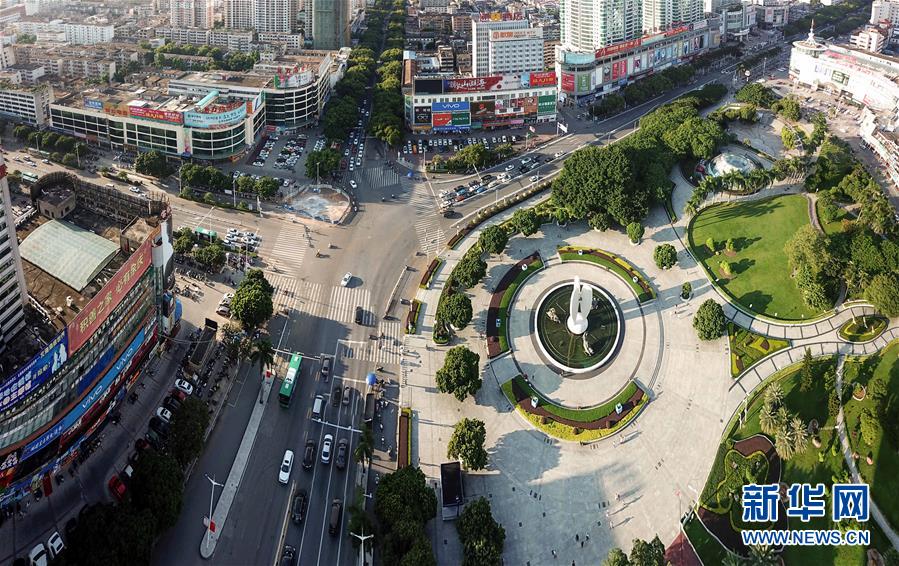 這是廣西北海市北海大道和北京路交匯處街景(9月27日無人機拍攝)。