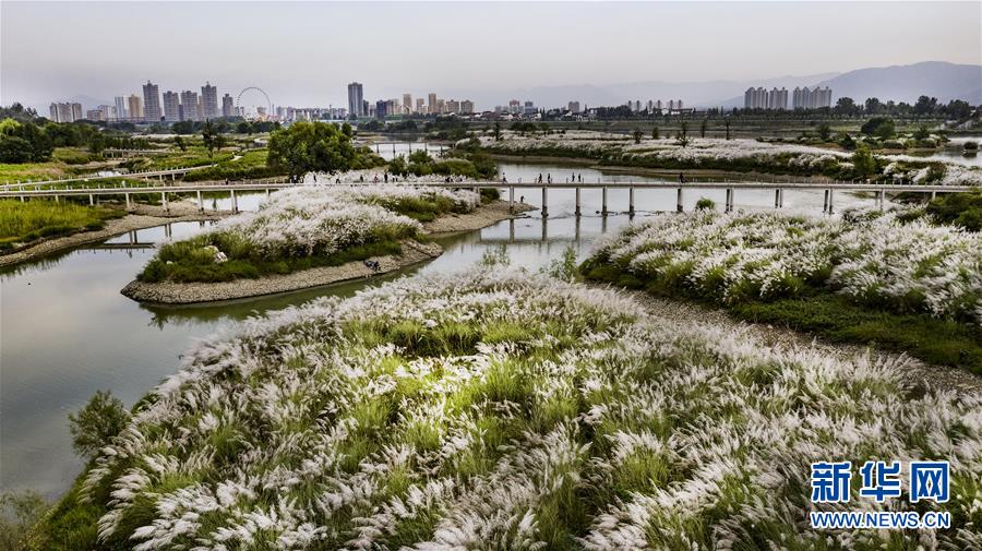 近日,陜西省漢中市沿漢江兩岸的濕地公園數(shù)百畝蘆花蕩漾,令游人流連忘返。 新華社記者陶明 攝