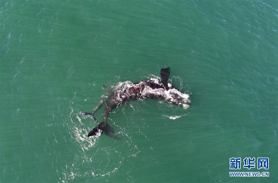 9月30日,在南非赫曼紐斯小鎮(zhèn)附近海面上,2頭南露脊鯨在海岸邊暢游。9月29日,位于開普敦以東約115公里的赫曼紐斯小鎮(zhèn)迎來(lái)2018年的鯨魚節(jié),來(lái)自世界各地的游客可乘船出海觀鯨,也可在岸邊等待鯨魚的到來(lái)。新華社記者陳誠(chéng)攝