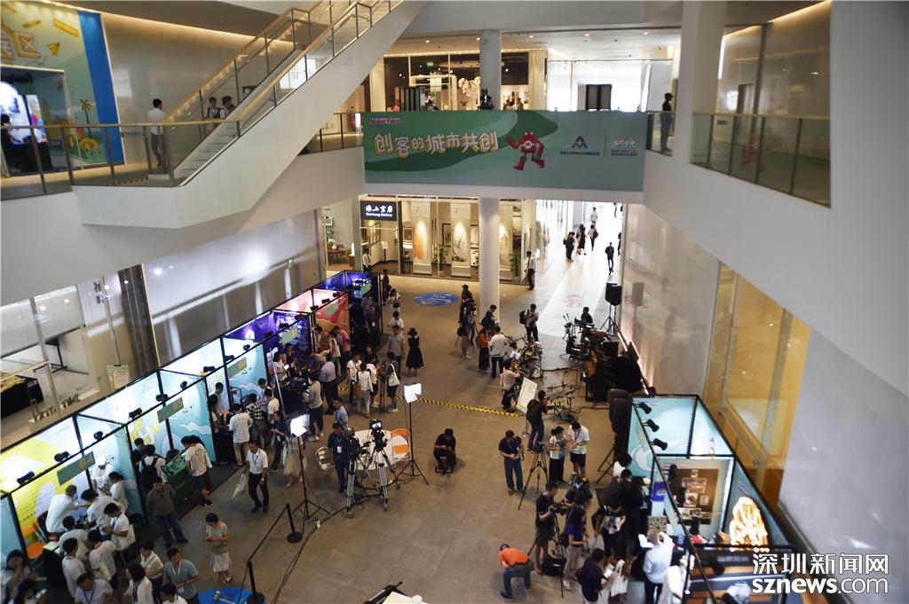 深圳雙創(chuàng)周主會場1樓內(nèi)部,創(chuàng)意站位前參觀人數(shù)眾多,非常熱鬧