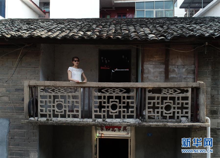 9月26日早晨,楊虹在自家陽臺練習(xí)發(fā)聲(無人機(jī)拍攝)。