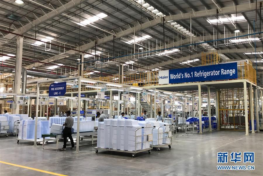 2017年11月16日,工人在位于印度馬哈拉施特拉邦浦那市的中國海爾集團工業(yè)園廠房內工作。