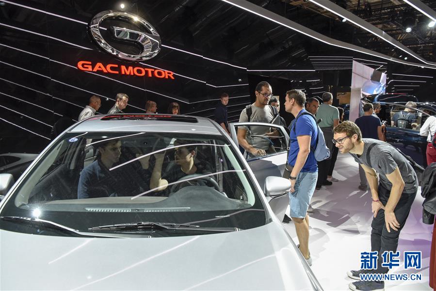10月14日,在法國巴黎國際車展上,人們參觀廣汽傳祺品牌展臺。 當(dāng)日,2018年巴黎國際車展閉幕。據(jù)主辦方統(tǒng)計,超過100萬人次參觀了本屆車展。 新華社記者 陳益宸 攝