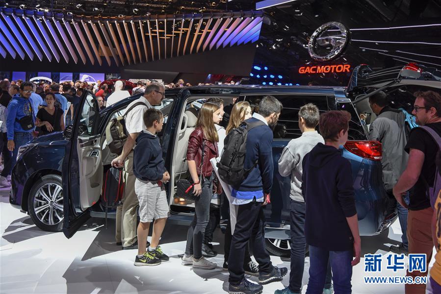 10月14日,在法國巴黎國際車展上,人們參觀廣汽傳祺品牌展臺。 當日,2018年巴黎國際車展閉幕。據(jù)主辦方統(tǒng)計,超過100萬人次參觀了本屆車展。 新華社記者 陳益宸 攝