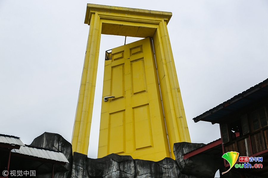 這扇金色大門位于房屋頂部,高約8米,只有門框和門,半開著的大門,帶著一絲神秘色彩,因而被民眾戲稱為“上帝之門”。