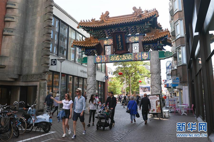 10月13日,在荷蘭海牙,人們經(jīng)過(guò)唐人街的牌坊。