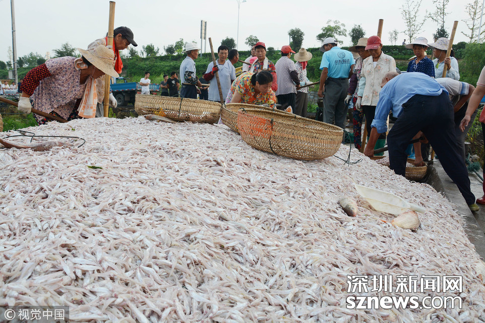 2018年8月16日,安徽巢湖漁民正在裝運捕撈上來的毛魚和銀魚。