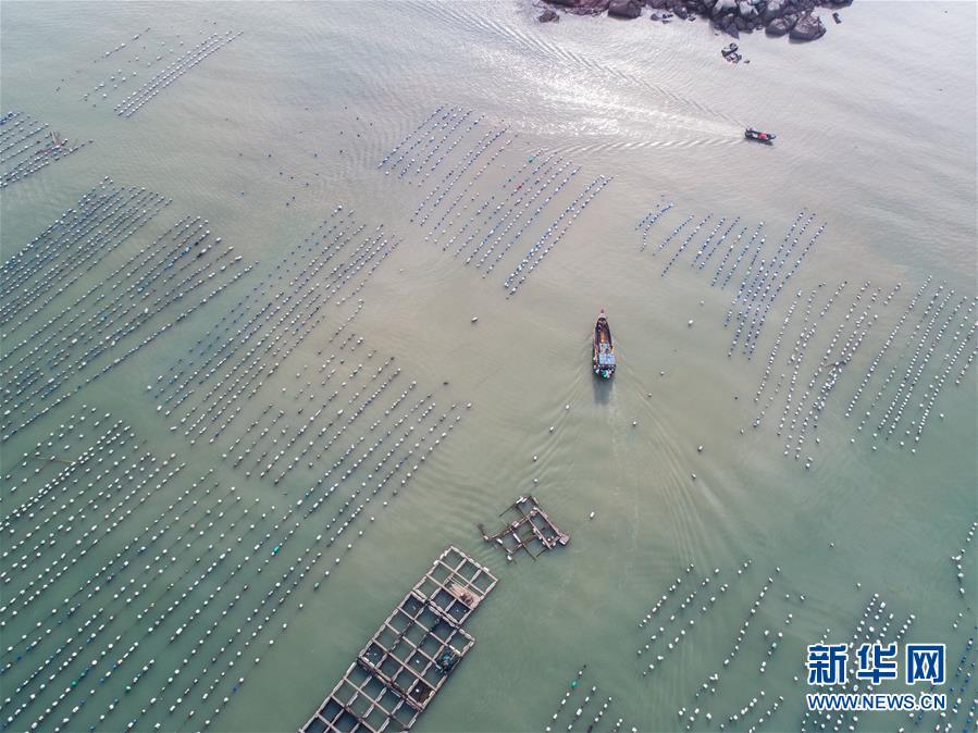 8月19日,空中俯瞰南麂島海域內(nèi)的“海上牧場”養(yǎng)殖區(qū)(無人機(jī)拍攝)。進(jìn)入8月,浙江省溫州市平陽縣南麂鎮(zhèn)海域上大片的大黃魚、貽貝等特色海產(chǎn)品養(yǎng)殖區(qū)域迎來豐收季節(jié),養(yǎng)殖戶們駕駛漁船在養(yǎng)殖區(qū)海域進(jìn)行打撈收獲,在碧海藍(lán)天下構(gòu)成了一幅“海上牧場”的美麗豐收景象。近年來,南麂鎮(zhèn)政府引導(dǎo)漁民養(yǎng)殖戶充分發(fā)揮“靠海吃海”的資源優(yōu)勢,大力發(fā)展海洋養(yǎng)殖經(jīng)濟(jì)和海島旅游經(jīng)濟(jì),實(shí)現(xiàn)了南麂由“生態(tài)美”向“產(chǎn)業(yè)美”,“產(chǎn)業(yè)美”向“經(jīng)濟(jì)美”的轉(zhuǎn)變。同時(shí)該鎮(zhèn)堅(jiān)持以大黃魚、貽貝等為特色產(chǎn)業(yè)支撐,精準(zhǔn)發(fā)展高效海洋養(yǎng)殖業(yè),重點(diǎn)培養(yǎng)一批新型職業(yè)漁民,依靠專業(yè)技術(shù)支持,實(shí)現(xiàn)深海仿生養(yǎng)殖,讓好生態(tài)造就好品質(zhì),重點(diǎn)打造南麂養(yǎng)殖品牌,組建營銷網(wǎng)絡(luò),拓展特色海產(chǎn)品市場。新華社記者 徐昱攝