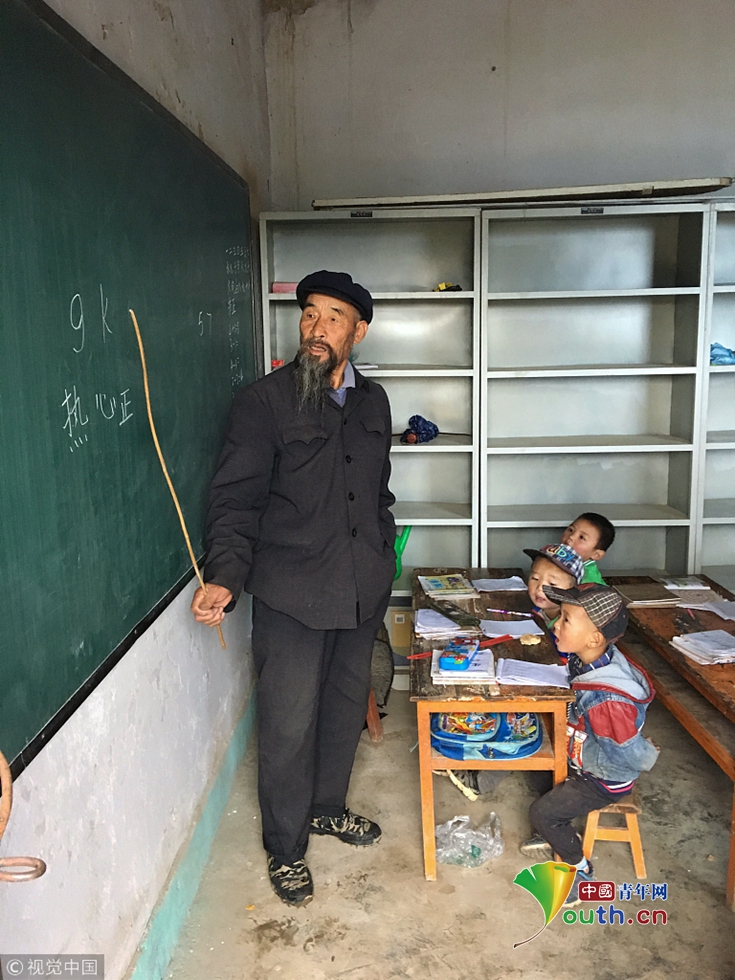 2017年9月26日,甘肅省武山縣樺林鎮(zhèn),有一個(gè)住著80多戶人家的小山村,叫柒坪村。村里有個(gè)沒有名字的幼兒園,里面有16個(gè)可愛的孩子。這個(gè)幼兒園的老師,不是女老師,更不是年輕人,是一位男老師,是一位75歲的老教師,他叫高世榮。圖片作者:一平/視覺中國