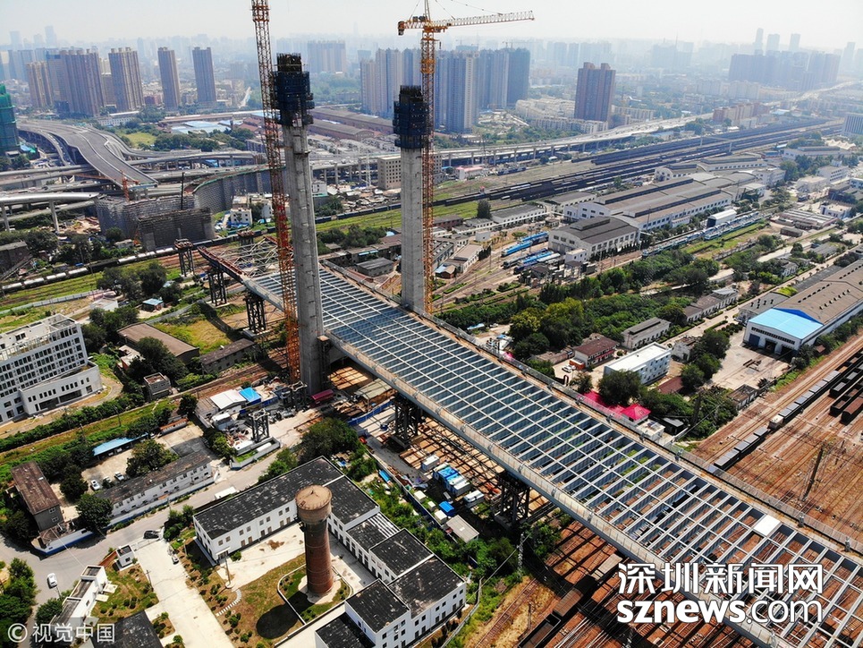 深圳新聞網訊 2018年8月19日,鄭州,跨亞洲最大火車站編組站的農業(yè)路高架鄭北大橋工程開始最后一輪頂推,長度為160米,約占總頂推長度的1/3,頂推重量達到9000噸。