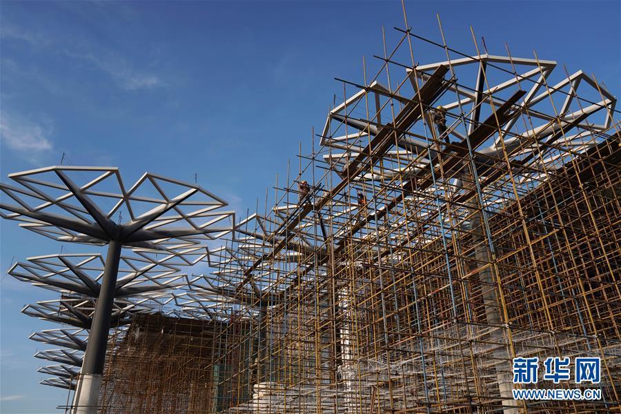 10月18日拍攝的建設(shè)中的北京世園會國際館。新華社記者 鞠煥宗 攝