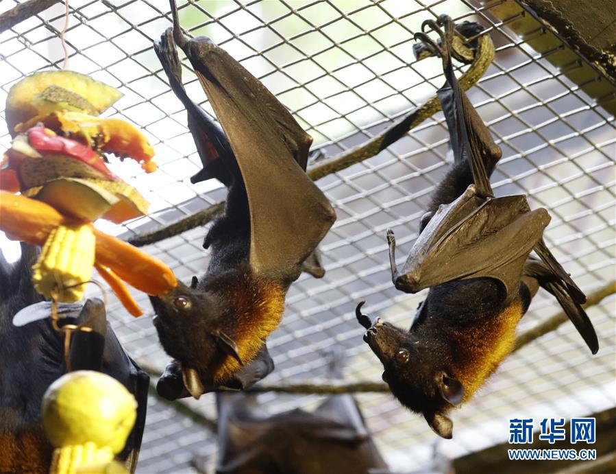 10月18日,馬來大狐蝠在進食。 當日,馬來大狐蝠在廣州長隆野生動物世界首次展出。馬來大狐蝠體長20至25厘米,翼幅最大近兩米,主要分布在印度尼西亞與馬來西亞等地。 新華社記者 黃國保 攝