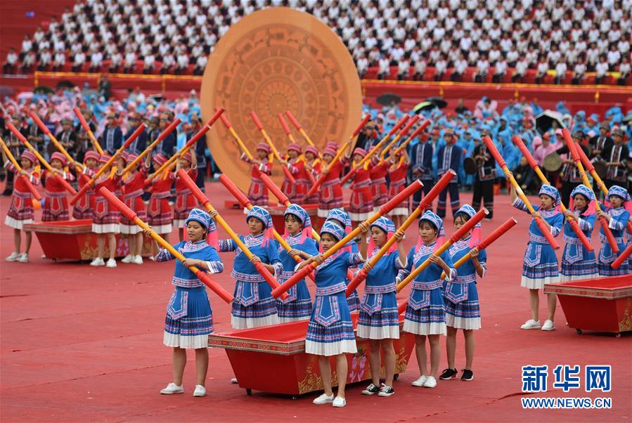 10月20日,各族同胞在廣西大化瑤族自治縣江濱文化廣場表演節(jié)目,慶??h慶。