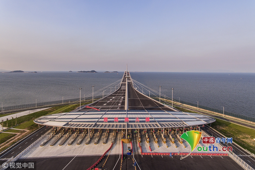 2018年5月23日,廣東珠海,珠澳口岸人工島上的港珠澳大橋收費站。