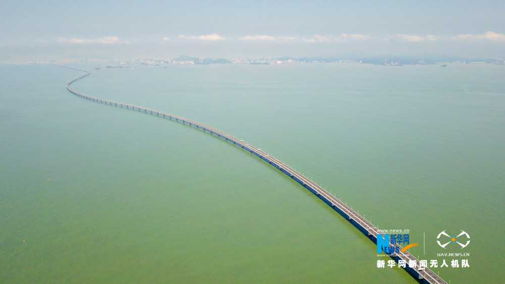 圖為新華網(wǎng)無(wú)人機(jī)隊(duì)航拍港珠澳大橋。新華網(wǎng) 黃璐璐 攝