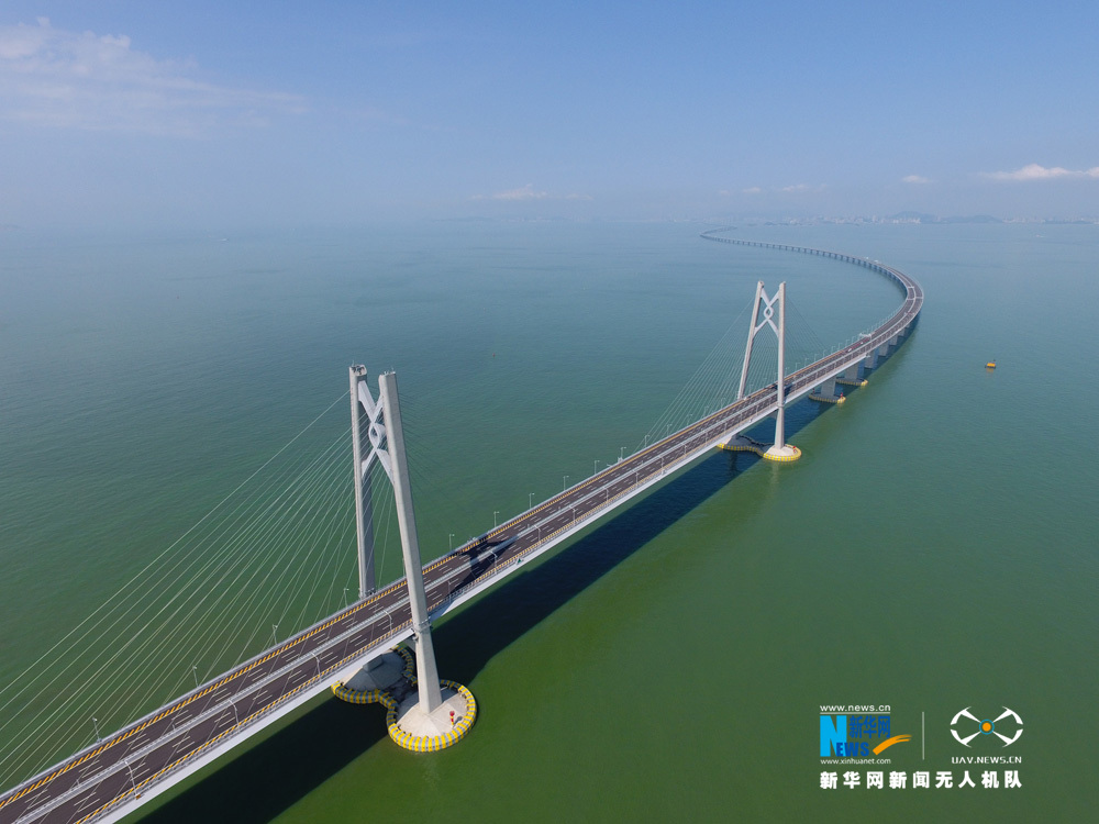 圖為新華網(wǎng)無人機隊航拍港珠澳大橋。新華網(wǎng) 黃璐璐 攝