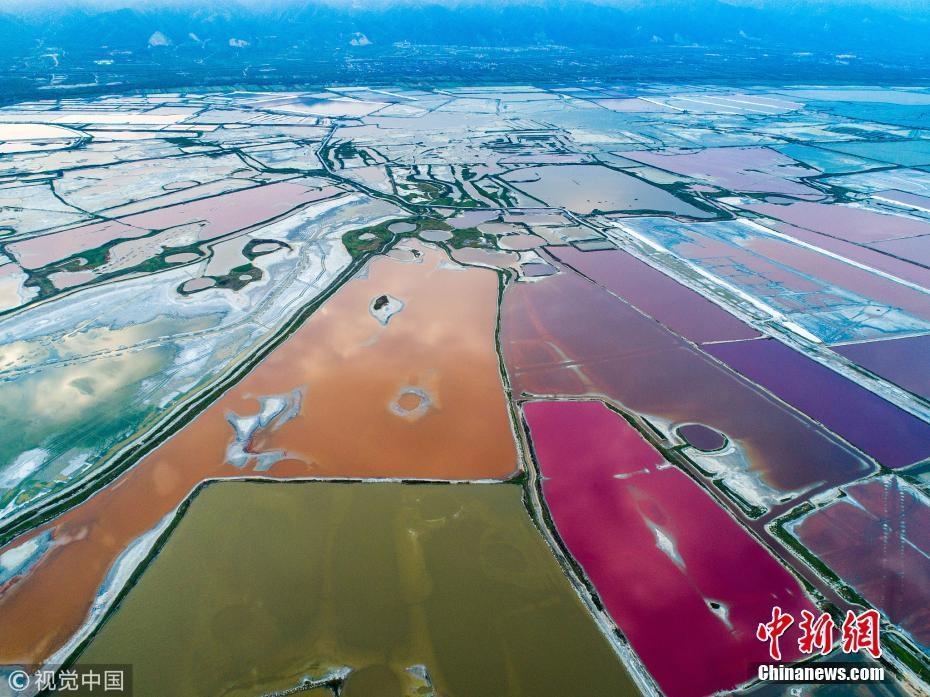 10月6日,山西省運(yùn)城鹽湖景區(qū)鹽湖秋日美景。入秋以來(lái),隨著氣溫的改變,山西省運(yùn)城鹽湖泛起出色彩斑斕、美不勝收的秋天特有的七彩景致,非常迷人。尚建周 攝 圖片來(lái)源:視覺(jué)中國(guó)