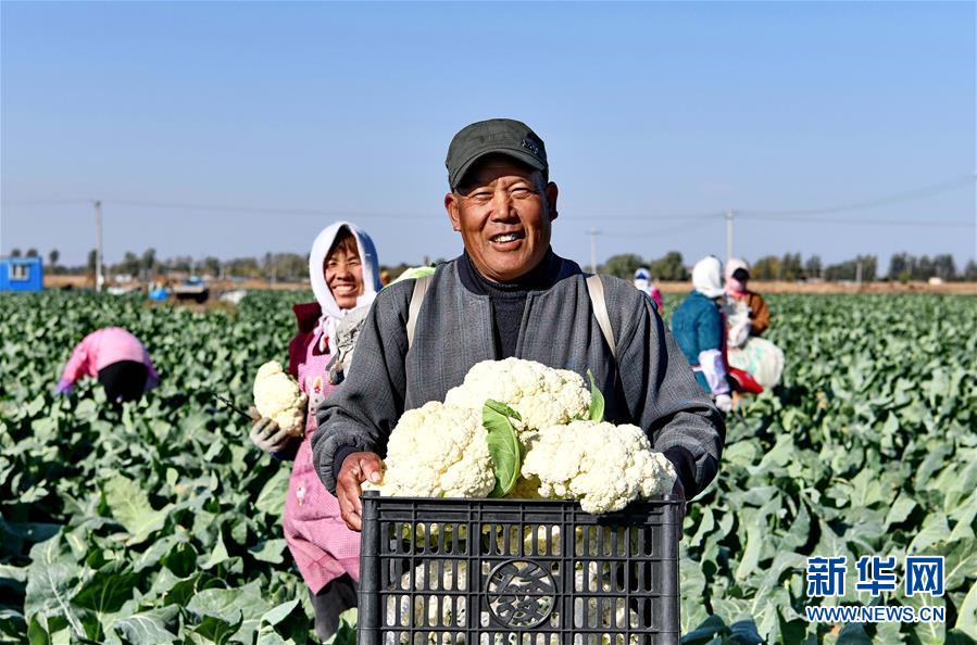 10月29日,樂亭縣馬頭營(yíng)鎮(zhèn)馬頭營(yíng)村的農(nóng)民在收獲菜花。