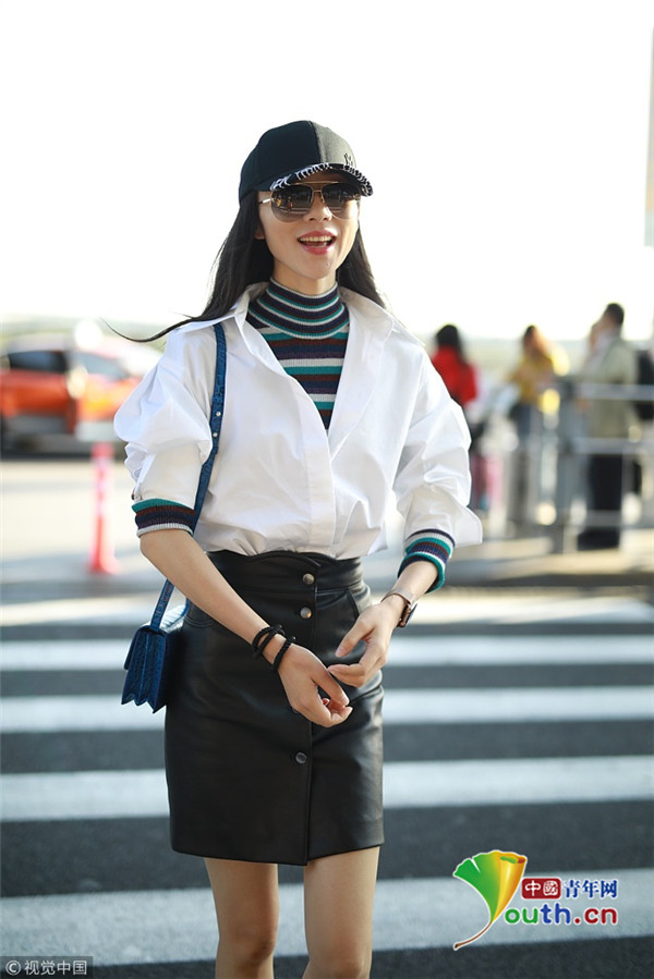 韓雪襯衫短裙清新養(yǎng)眼 帥氣邁步自提 ...