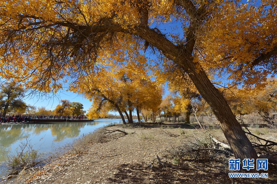 這是在內(nèi)蒙古自治區(qū)額濟(jì)納旗拍攝的胡楊林(10月10日攝)。 金秋時(shí)節(jié),內(nèi)蒙古自治區(qū)額濟(jì)納旗胡楊林如同披上金裝,成為大漠中的一抹亮色,吸引眾多中外游客前來觀賞游玩。 新華社記者鄒予攝