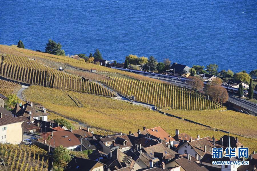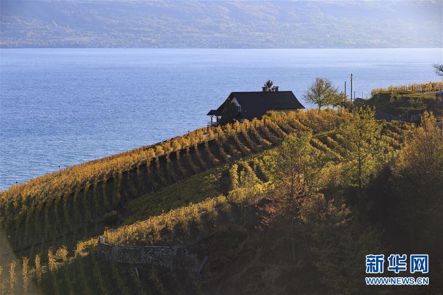 這是10月30日在瑞士西部拉沃地區(qū)拍攝的梯田式葡萄園秋景。