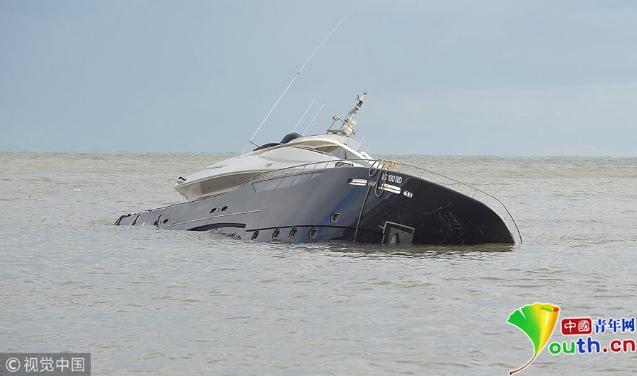 圖為一艘船只被暴風雨襲擊后傾覆在海面。