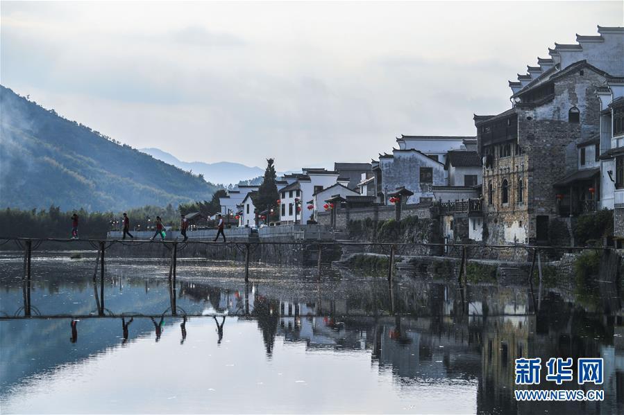 2018年10月17日,游客從河橋鎮(zhèn)一木橋上走過。浙江省杭州市臨安區(qū)河橋鎮(zhèn)擁有1300多年的歷史,鎮(zhèn)范圍內(nèi)至今仍保留著100多幢古建筑。2018年2月,河橋鎮(zhèn)成功創(chuàng)建浙江省小城鎮(zhèn)環(huán)境綜合整治樣板鎮(zhèn)。