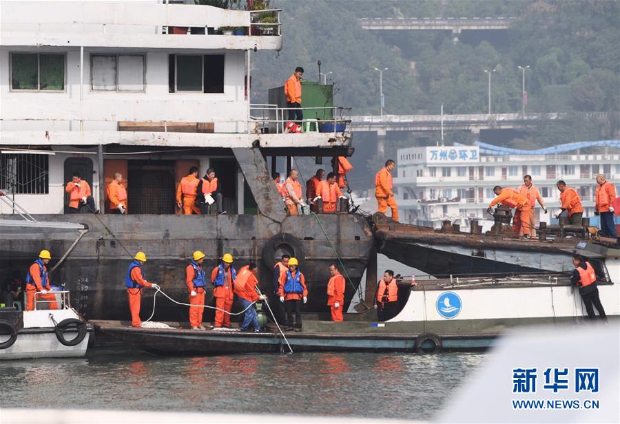 這是10月29日拍攝的重慶萬州公交車墜江事故救援現(xiàn)場。