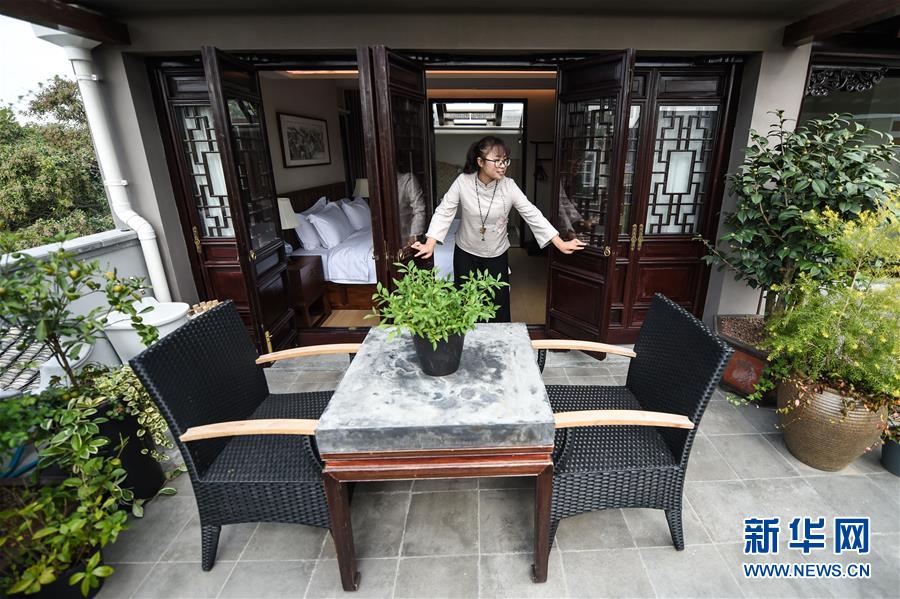 10月31日,在蘇州市吳江區(qū)同里古鎮(zhèn)的一處民宿,工作人員在打掃房間。 新華社記者李博攝
