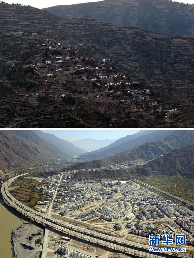 這是一張拼版照片。上圖為隴南市武都區(qū)坪埡藏族鄉(xiāng)腰道村全景(2016年9月1日攝);下圖為隴南市武都區(qū)的“新坪埡”全景(10月31日無人機(jī)拍攝)。歷經(jīng)3年多的建設(shè),在甘肅省隴南市武都區(qū)白龍江畔,一個(gè)嶄新的“新坪埡”即將建成,預(yù)計(jì)今年年底實(shí)現(xiàn)全面建成搬遷。 坪埡藏族鄉(xiāng)是甘肅省隴南市25個(gè)特困片區(qū)鄉(xiāng)鎮(zhèn)之一,2015年,當(dāng)?shù)卣龀銎簣翰刈遴l(xiāng)易地扶貧搬遷重大決策,對深山上的8個(gè)村1236戶5731人實(shí)施易地扶貧搬遷,總投資4.69億元,是甘肅省“十三五”時(shí)期易地扶貧搬遷工程重點(diǎn)建設(shè)項(xiàng)目。 全面建成搬遷后,當(dāng)?shù)卣畬Π徇w安置區(qū)與周邊景區(qū)進(jìn)行整體規(guī)劃,打造民族風(fēng)情和鄉(xiāng)村生態(tài)旅游村;同時(shí)加大群眾專業(yè)技能培訓(xùn),并引進(jìn)企業(yè)實(shí)現(xiàn)群眾本地就業(yè),幫助搬遷群眾增收致富。新華社記者 范培珅攝