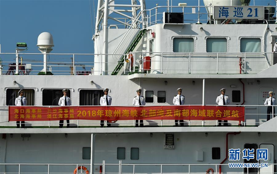 11月3日,海事執(zhí)法人員乘“海巡21”輪出發(fā)。當(dāng)日,隨著“海巡21”輪緩緩駛離??诤J卤O(jiān)管基地碼頭,由瓊桂粵海事部門共同開展的瓊州海峽、北部灣及環(huán)海南島水域跨轄區(qū)聯(lián)合巡航執(zhí)法活動揭開序幕。新華社記者楊冠宇攝