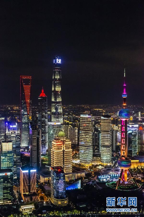 這是11月2日拍攝的上海浦東建筑群夜景。 首屆中國國際進口博覽會即將在上海開幕。美麗的上海張開懷抱,迎接八方來客。 新華社記者 沈伯韓 攝