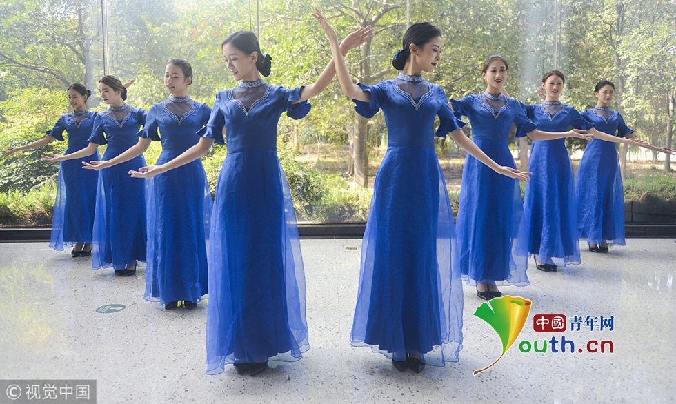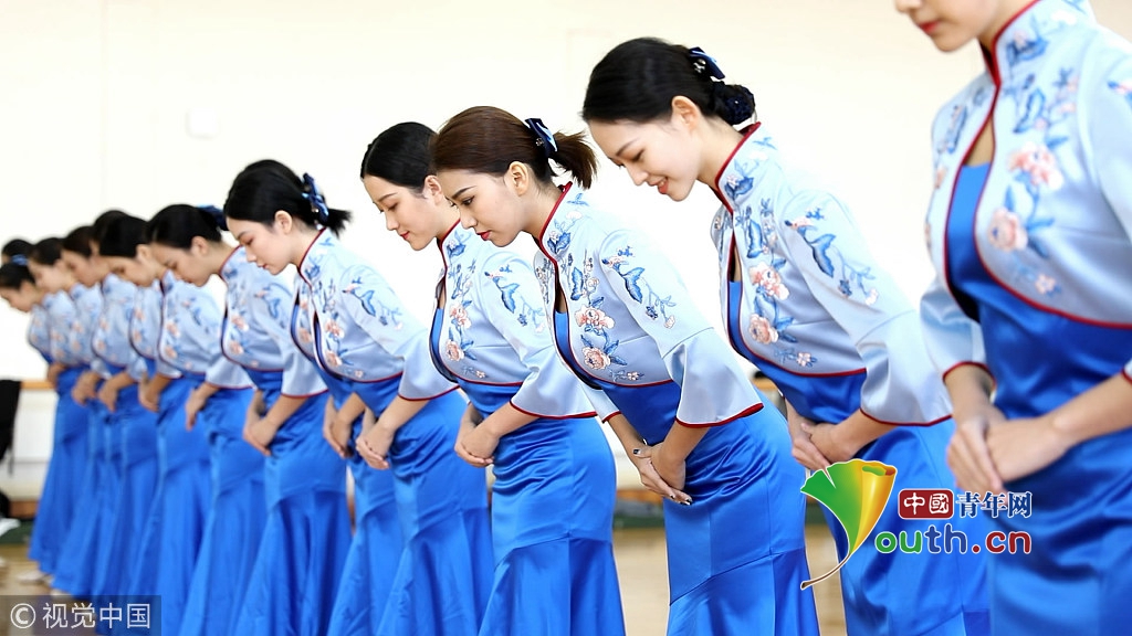 2018年10月15日,杭州,第五屆世界互聯(lián)網(wǎng)大會(huì)召開在即,來自浙江傳媒學(xué)院的禮儀志愿者們正在進(jìn)行緊張有序的集中訓(xùn)練。圖片作者:浙江日報(bào) 馮賀/視覺中國