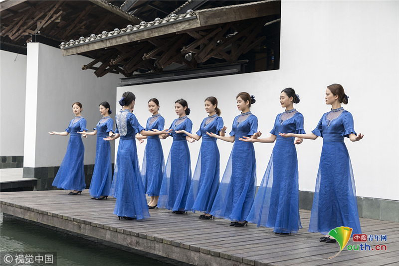 2018年11月5日,浙江嘉興,大會(huì)志愿者“小梧桐”爭(zhēng)分奪秒,在烏鎮(zhèn)展開緊張的實(shí)戰(zhàn)培訓(xùn)。阿凡提達(dá)/視覺中國(guó)