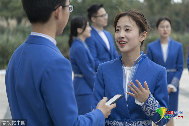 2018年11月5日,浙江嘉興,大會志愿者“小梧桐”爭分奪秒,在烏鎮(zhèn)展開緊張的實(shí)戰(zhàn)培訓(xùn)。阿凡提達(dá)/視覺中國